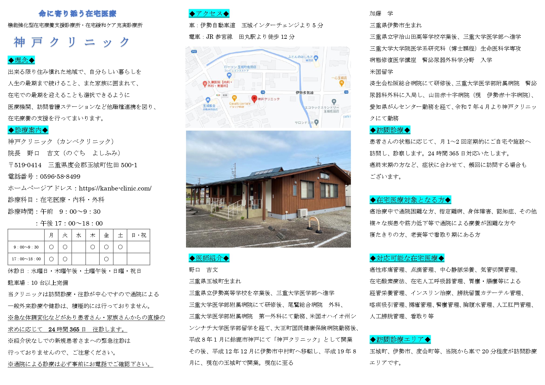 ※初回来院の方は、診察をお断りすることがありますので、必ずお電話(0596-58-8499)でお問い合わせ下さい。